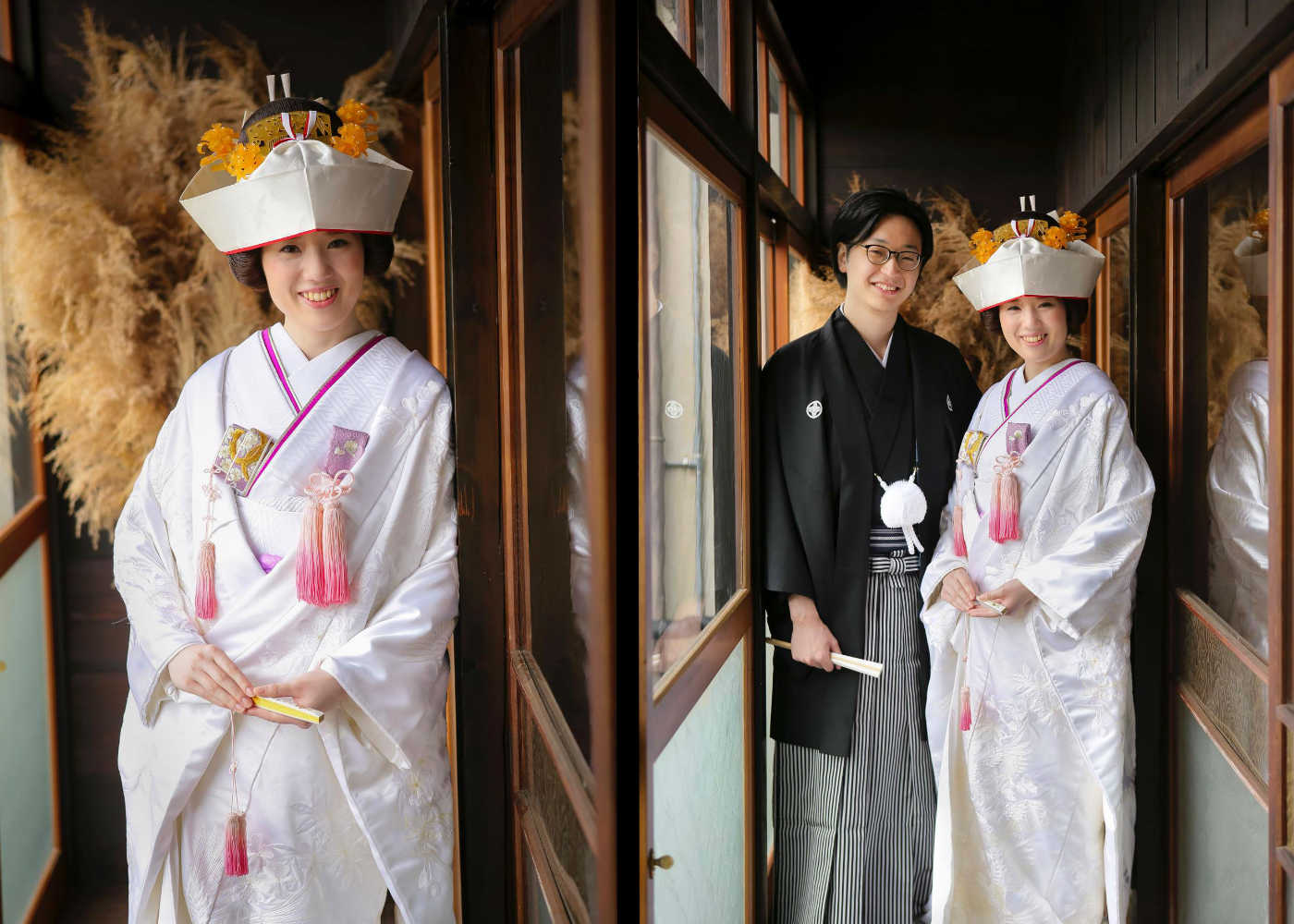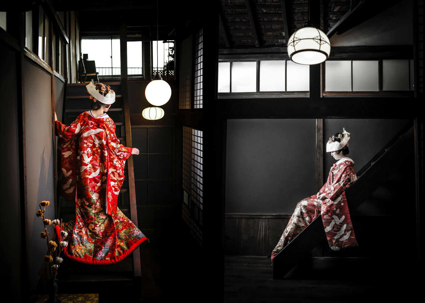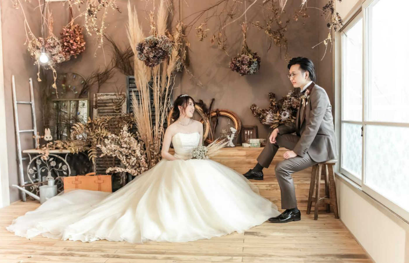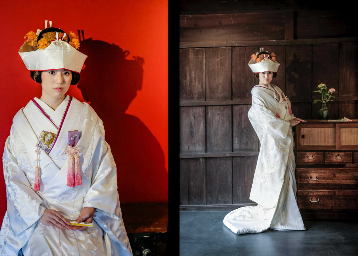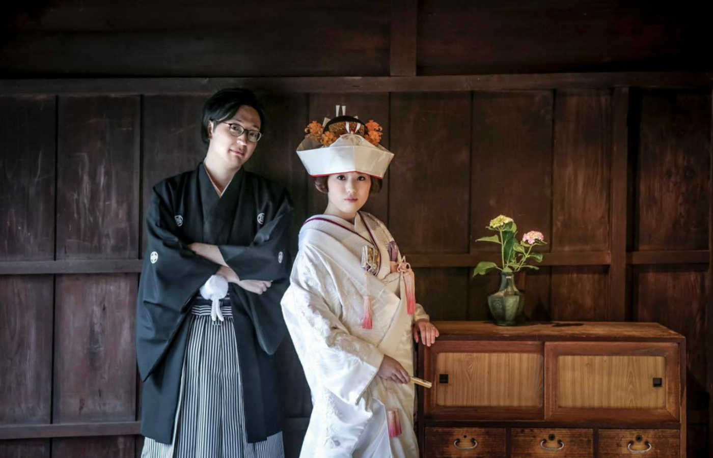 古民家という和装が引き立つスタジオでの撮影と、それでいて洋の雰囲気ともマッチする演出は、どれを見ても文句なしの仕上がりです。現在は様々な撮影スタイルがありますが、和装での撮影を検討しているのであればぜひ一度のカウンセリングをオススメします。