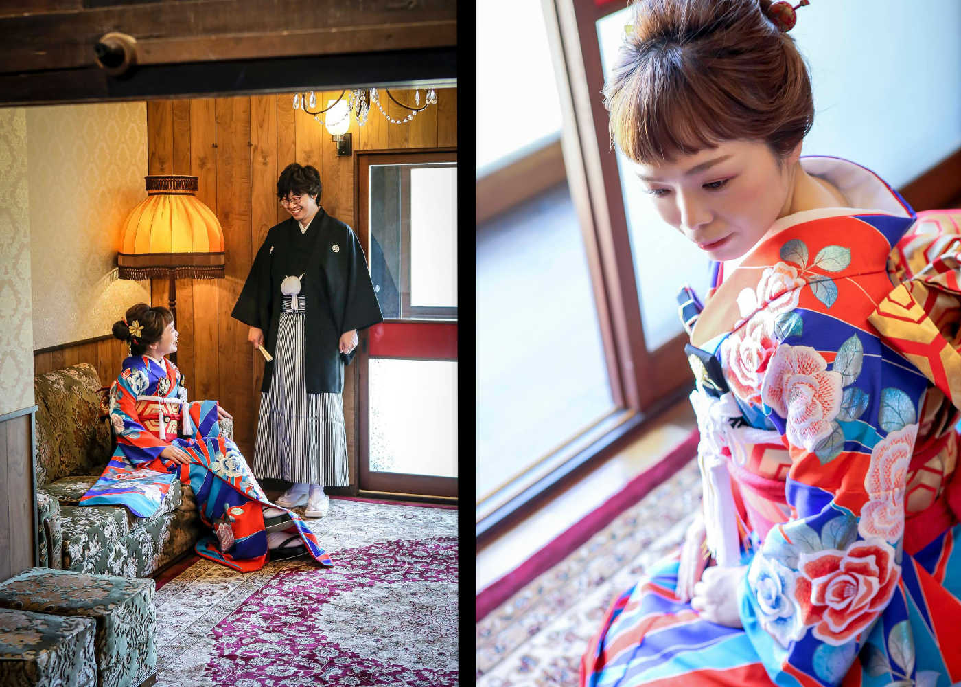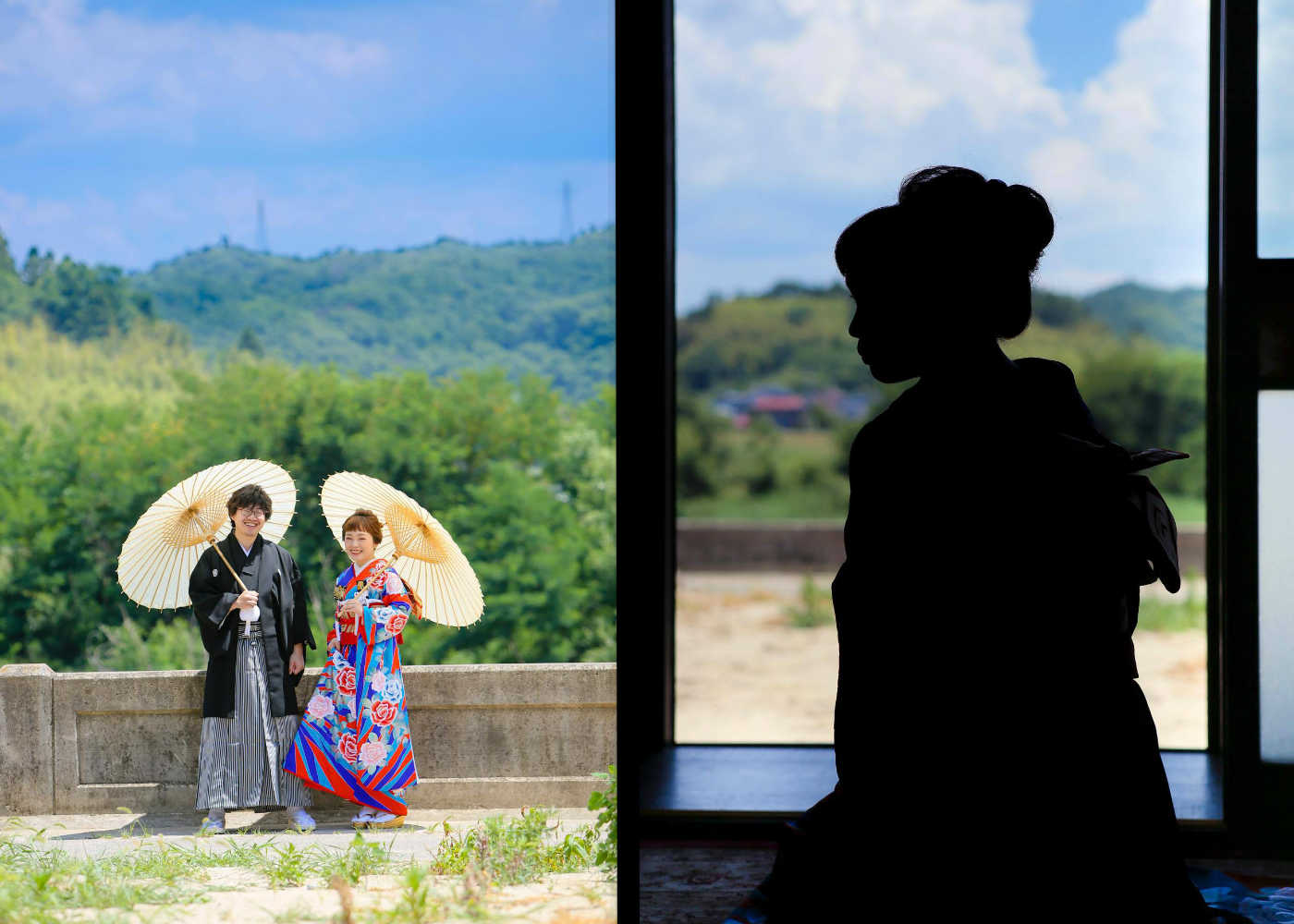 よくある前撮り写真とは違った写真を残したいなら、それが叶うと思います。古民家のどこの部屋で撮っても絵になります。そして和装ならではの髪型や角隠しも絶対オススメです。担当の伊藤さんは以前ウェディングプランナーをされていたので挙式当日のドレスや髪型の相談もさせていただきました。挙式のことで誰かに相談したいけど式場のプランナーさんではない話など、家族や友達とは違う視点で親身になってアドバイスしてくださり不安が解消されると思います。そういう面でも挙式をする花嫁にはオススメです。