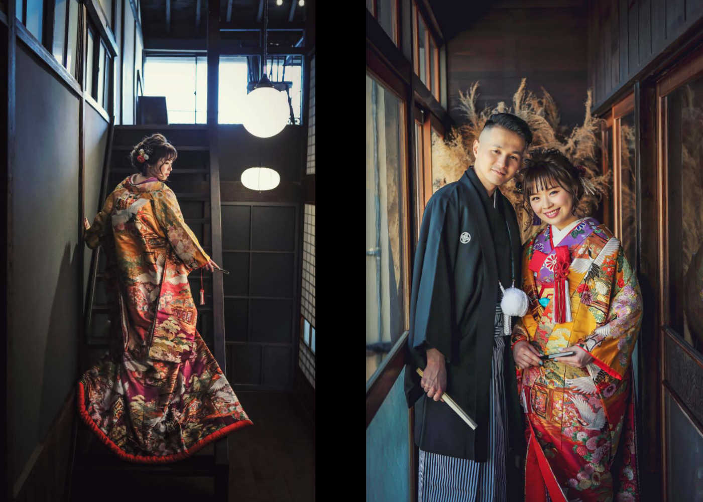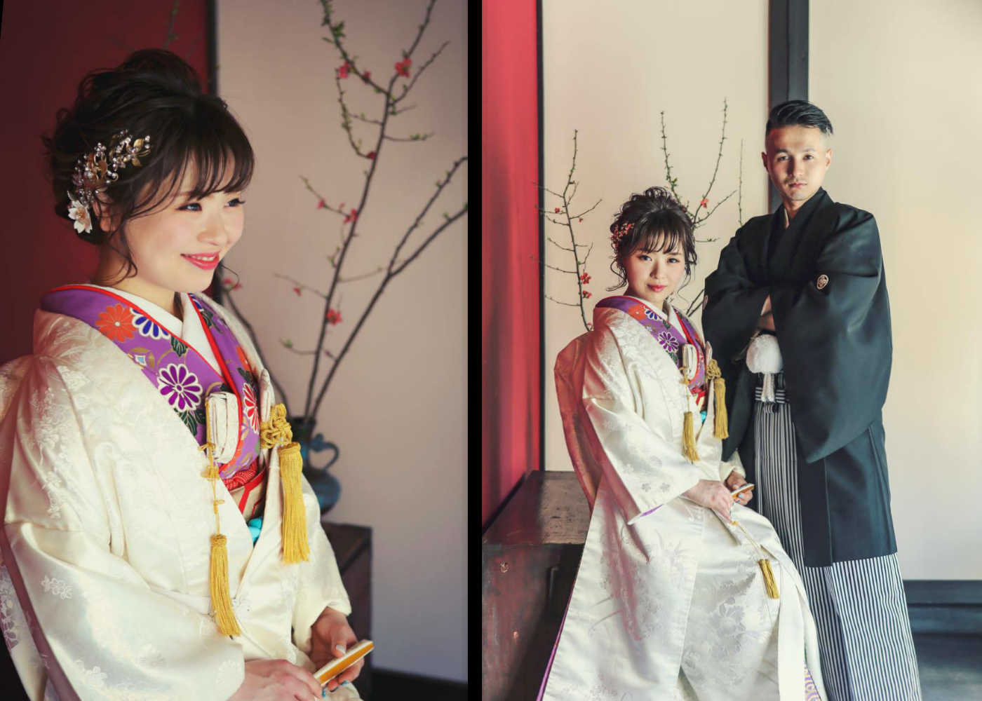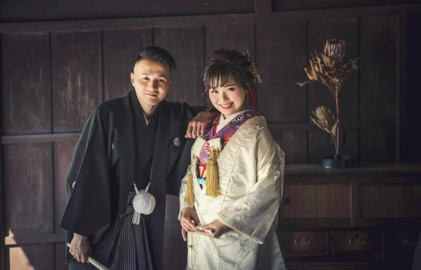 元々、結婚式を挙げる予定はなく、「和装で写真だけは残したいね」と話していました。そんなとき新しく古民家スタジオができたという情報が入り、とりあえず話だけでもと思い、聞きに行ってみました。すると自分たちの求めていたロケーション、衣装、雰囲気とイメージがマッチしていたので撮影をお願いすることにしました。