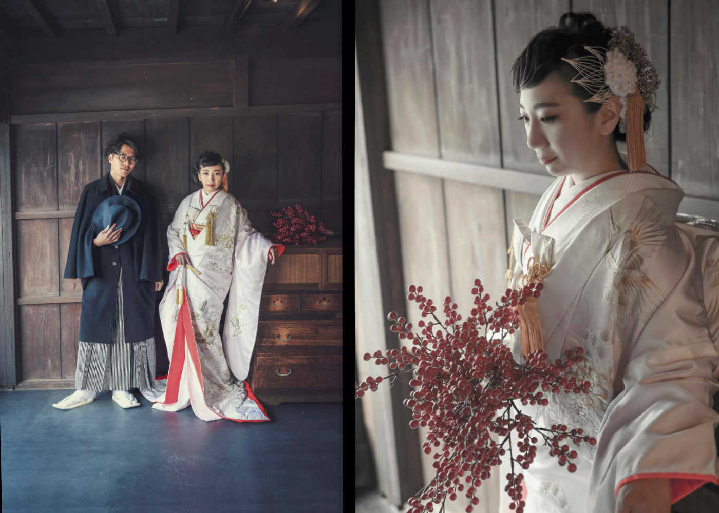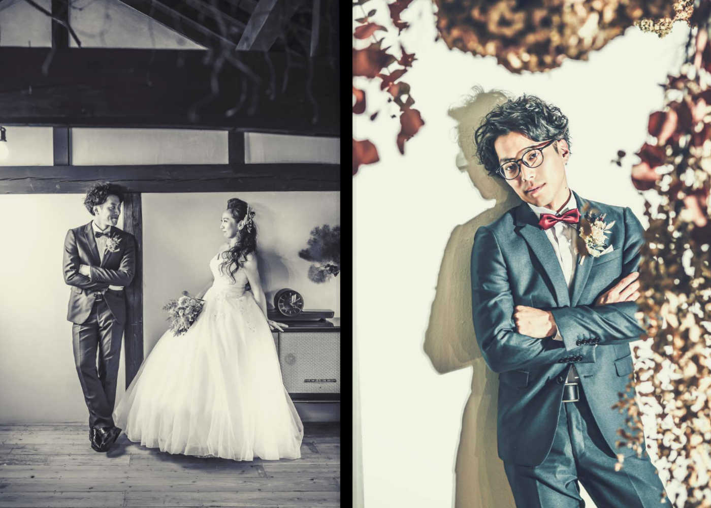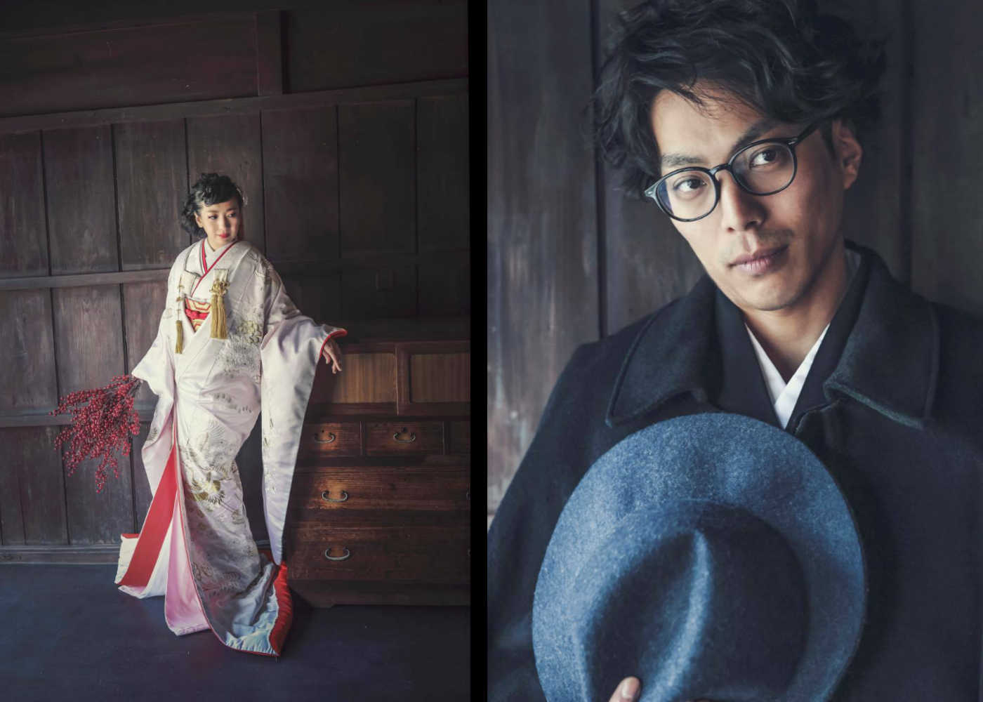 普通の結婚写真とはちょっと違う写真を撮りたいと考え、福島県内の写真館などを探していたところ、KAMIMACHIさんを見つけました。古民家でフォトスタジオって素敵だなと、しばらくSNSなどチェックしていたのですが、見ている間上がってくる写真がどれも印象的で驚きました。大人な雰囲気や、可愛いや綺麗だけではない独特の印象に惹かれ、KAMIMACHIさんで撮る事にしました。
