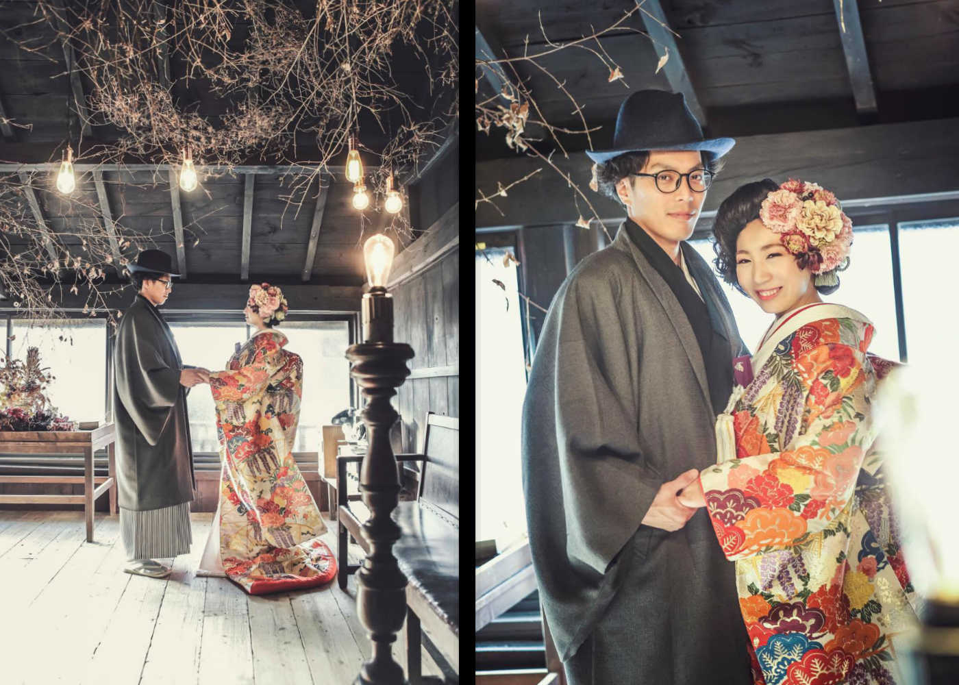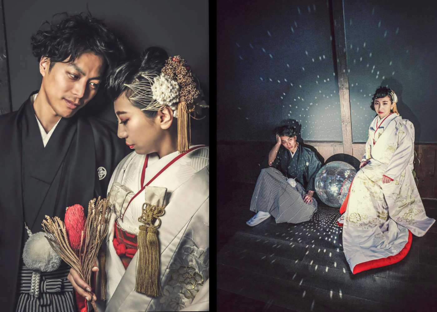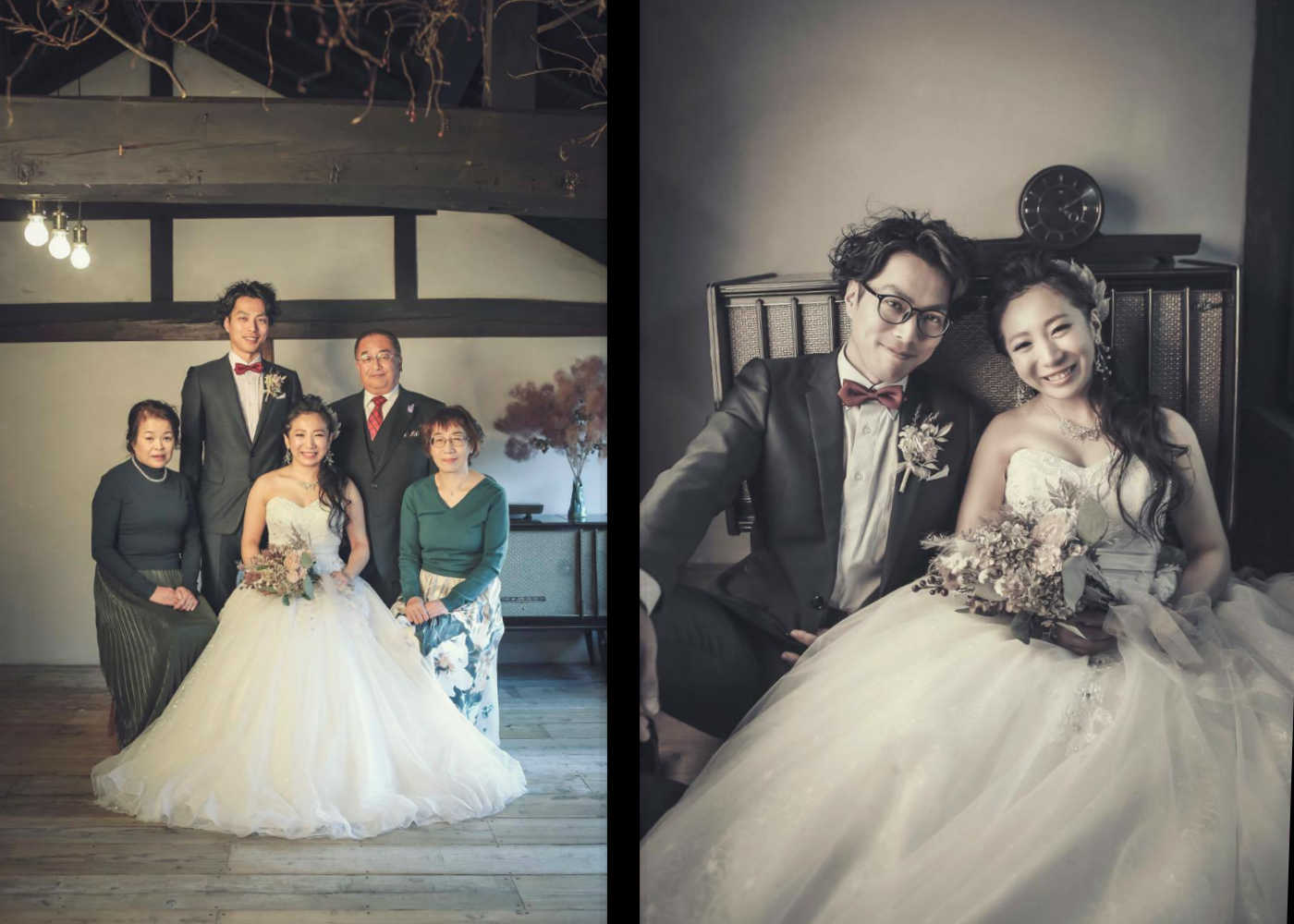 普通の結婚写真とはちょっと違う写真を撮りたいと考え、福島県内の写真館などを探していたところ、KAMIMACHIさんを見つけました。古民家でフォトスタジオって素敵だなと、しばらくSNSなどチェックしていたのですが、見ている間上がってくる写真がどれも印象的で驚きました。大人な雰囲気や、可愛いや綺麗だけではない独特の印象に惹かれ、KAMIMACHIさんで撮る事にしました。
