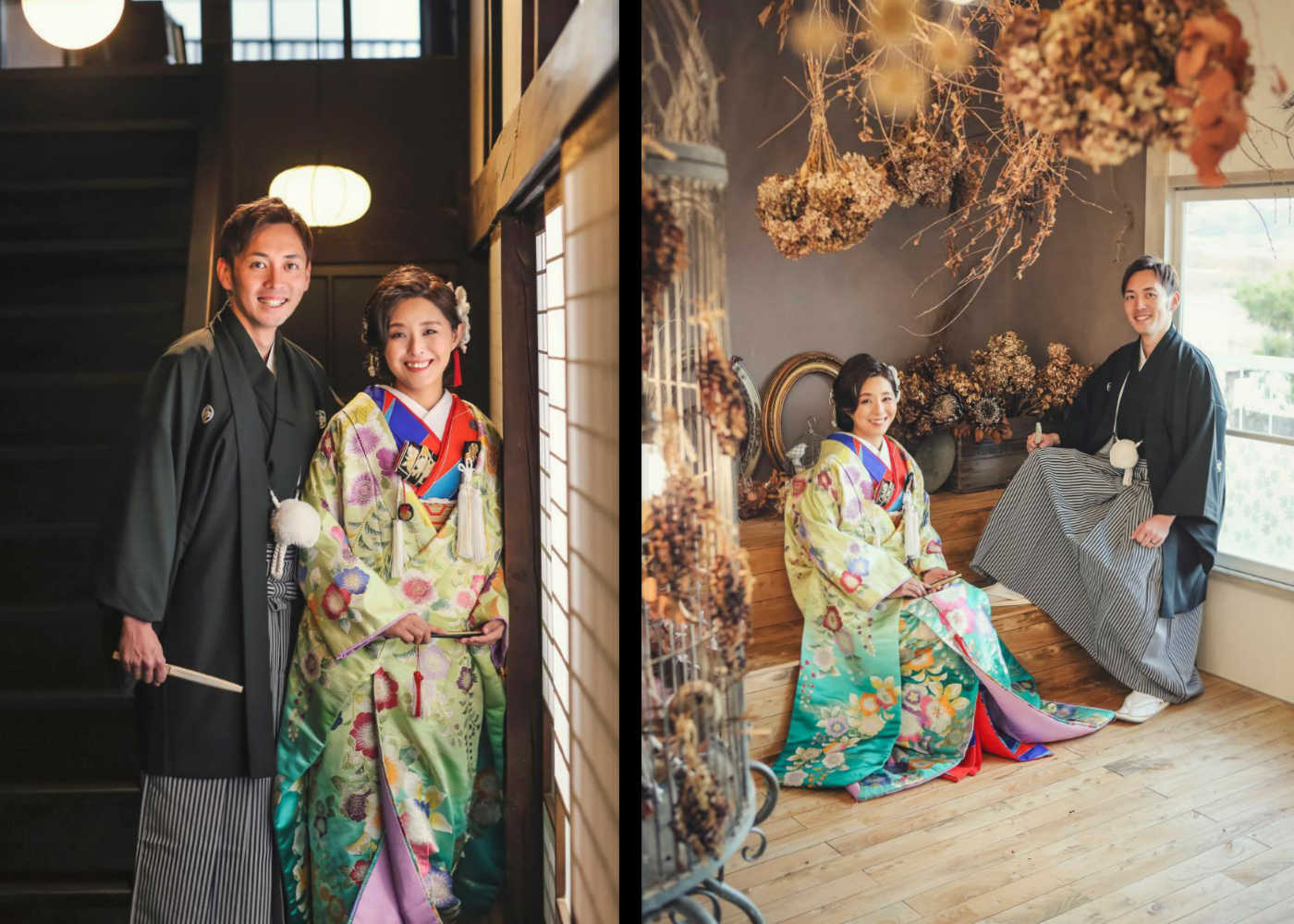 実は娘の成人式の前撮りを願いする写真スタジオを探していて、そんな時にKAMIMACHIさんのHPに出会いすぐに電話しました。なので、自分が花嫁写真を撮る予定は全くありませんでしたが、打合せの際に初めて担当の順子さんにお会いし、色々なお話をしていく中で、自分が事情があり結婚式を挙げていないことや、結婚写真を撮っていないことなどをポロリと話したところ、「お嬢さんの成人写真と一緒に結婚写真も撮りましょう!」と提案していただきました。最初は年齢的なこともあり消極的でしたが、順子さんの言葉や、素晴らしい古民家や美しい衣装にどんどん心動かされ、撮影していただくことを決めました。