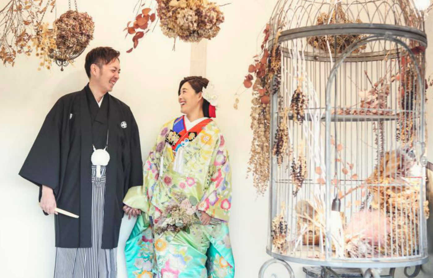 素敵なお着物がたくさんありました。アンティークでありながら新鮮で感動がある鮮やかなお着物が多く、衣裳合せでは選ぶ際も目移りしてしまい、中々選びきれませんでした。何回も試着させていただき、相談しながらゆっくりと選ばせていただいて本当に感謝しております。自分には似合わないと思っていた色打掛でしたが、実際に当日着てみると華やかで柔らかい雰囲気になりこれを選んで本当に良かったなと思いました。色打掛を着た瞬間から、がらりと雰囲気が変わり、引振袖のクールな感じをやんわりと優しい可愛いらしさに切り替えてくれて、引振袖の時とは全く違う雰囲気の写真が出来たと思います。