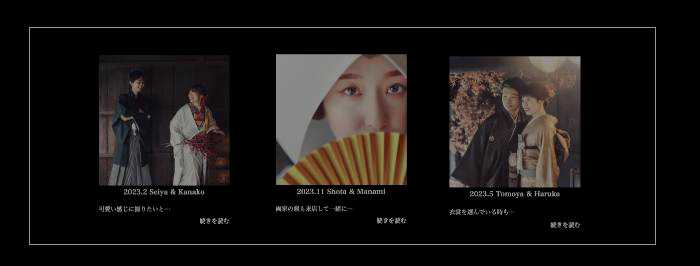 Photo Gallery花嫁ギャラリー 画像をクリックすると 体験レポートがご覧いただけます。 リアルな声と写真集にも使用した花嫁写真を お楽しみください。 花嫁着物にあわせる髪飾りにもこだわりを KAMIMACHIの髪飾りはスタイルに合わせて 組み合わせ自由 イメージに合わせてご提案致します 大切な家族の一員大好きなペットとのお写真も残せます KAMIMACHIではペットと一緒の撮影もOKです 結婚式には連れて行けないという方も 前撮りなら思う存分一緒に写真が残せます