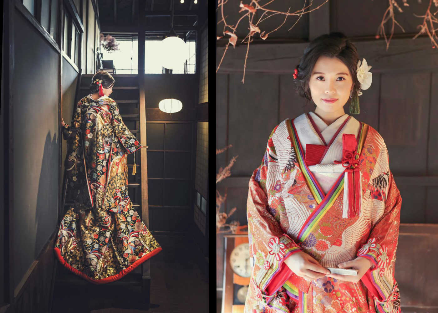 華やかな色打掛と小物のお色組合せが楽しめるプラン。